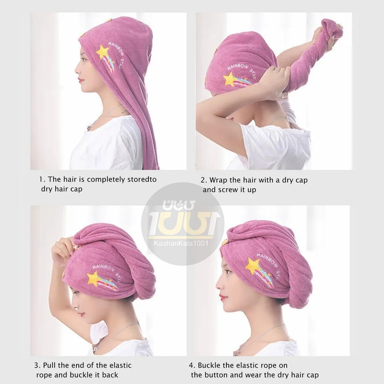 طراحی این محصول به شکلی است که همانطور که در تصویر میبینید به راحتی قابل استفاده میباشد و در پشت سر با استفاده از قلابی که دارد قفل میشود و موهای شما را در عرض چند دقیقه کاملا خشک میکند. این حوله وزنی معادل 400 گرم را نیز دارد.