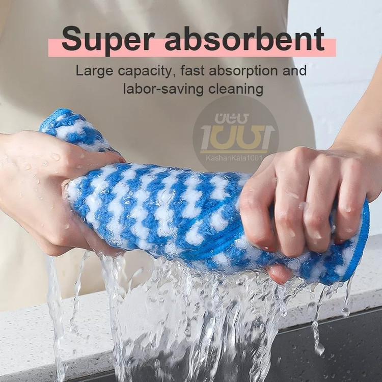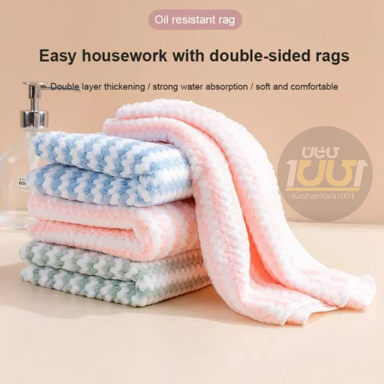 دستمال حوله ای میکروفایبر مناسب شستشو و آبگیری ظروف و سطوح داخل آشپزخانه با قدرت جذب بسیار بالا بدون پرزدهی و شستشوی راحت و همچنین قابل استفاده برای تمیز کردن صفحه ی موبایل مانیتور تلویزیون و خودروی شما بدون ایجاد خش هیچ لکه ای را به جا نمیگذارد