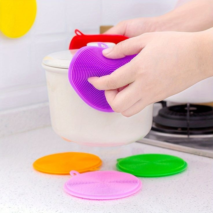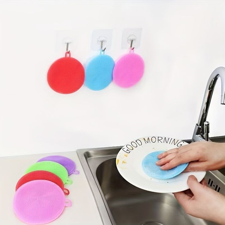 🐸 این اسکاچ با قطر ۱۱ سانتی متر در رنگ های مختلف طراحی و تولید شده است. دارای یک بخش در قسمت بالایی برای آویزان کردن این اسکاج و خشک شدن سریع آن.