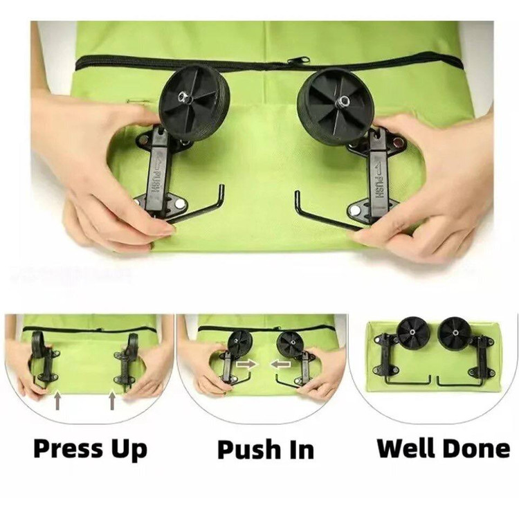 چرخ ها به راحتی در قسمت انتهایی ساک وصل هستن و قابلیت جداشدن و جمع شدن رو دارن