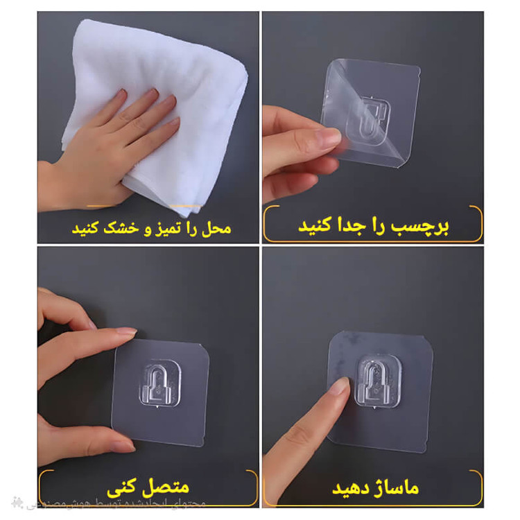 📌توجه : بعد از نصب ، سطح میخ جفتی را ماساژ دهید تا تمام قسمت های پشت میخ خیلی خوب به دیوار چسبیده و حتی الامکان 24 ساعت به آن استراحت دهید تا بیشترین قدرت و بهترین ورژن برچسب را تجربه کنید.