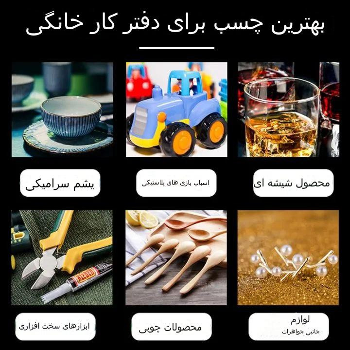 چسب فوری همه کاره یک چسب چند منظوره با نیروی چسبندگی قوی برای اتصال مواد پلاستیکی، چوبی، فلزی و مواد دیگر است. این چسب با وزن ۵۰ گرم و طول ۱۱.۵ سانتیمتر در بازار موجود است و بهراحتی میتوان از آن برای اتصال فلزات، سرامیک، ظروف چینی، ظروف سفالی، سنگهای مرمر، لاستیک، اکثر مواد پلاستیکی، چوب و شیشه استفاده کرد.👍🏻😍😉