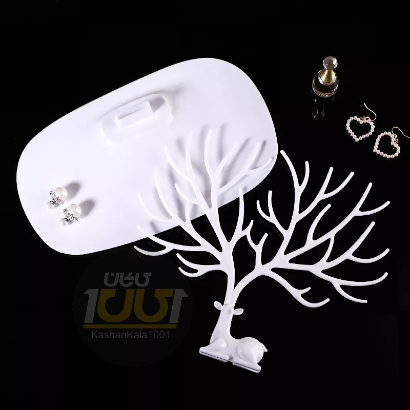و علاوه بر شاخ های گوزن که به منظور آویزان کردن زیورآلات در نظر گرفته شده است، دارای یک سینی به منظورقرار دادن لوازم آرایشی، کیف پول، ساعت و... است که می تواند تاثیر بسزایی در مرتب بودن روی میز آرایش شما داشته باشد. جنس این استند از مواد پلاستیکی درجه یک ABS می باشد و علاوه بر یک استند می تواند به عنوان یک وسیله دکوراتیو نیز مورد استفاده قرار گیرد.