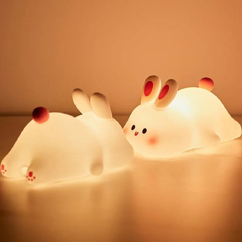 چراغ خواب کودک مدل خرگوش وسیله ای زیبا و کاربردی و البته ضروری برای اتاق خواب کودک شماست. جنس این چراغ خواب سیلیکونی بوده و از هرگونه آسیب رسانی به کودک شما جلوگیری می کند. این چراغ خواب با طراحی جذابی به شکل خرگوش دارای حالت نوری شب خواب است. چراغ خواب کودک یک ویژگی جذاب دارد که می توانید با ضربه زدن به سطح سیلیکونی چراغ خواب آن را روشن و خاموش کنید. این چراغ خواب کودک قابلیت شارژ مجدد را داراست و از طریق کابل Type-C (تایپ سی) موجود در جعبه می توانید آن را شارژ نمایید