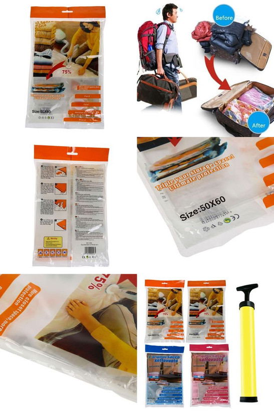 تصور کن میخوای به یه سفر طولانی بری یا قصد داری لباسهای زمستونی رو برای چند ماه جمع کنی؛ فقط کافیه لباسها رو بذاری توی کیسه و با یه جاروبرقی ساده، هوای اضافی رو بکشی بیرون. اینطوری حجم لباسها تا ۷۵٪ کاهش پیدا میکنه و دیگه نگران کمبود جا نخواهی بود!