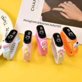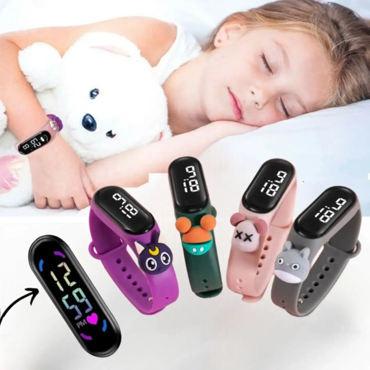 ساعتی ڪه هم به عنوان ساعت و هم به عنوان دستبند طراحی شده است کنار بند زیباش یه عدد عروسک استیکری اسپرت و زیبا در مدلهای مختلف طراحی شده که طراحی و زیباییش رو چند برابر میکنه دستبند ال ای دی دار اسپورت می باشد و بهترین هدیه برای دخترای گل و پسرای نازنینتون به عنوان هدیه ای خاصه که خیلی خوشحالشون میکنه